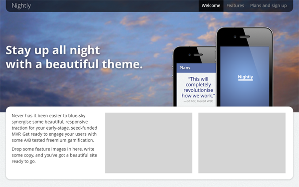Nightly is a clean, classy theme for advertising your product or service. Drop in your screenshots, customise the copy, and you're good to go.