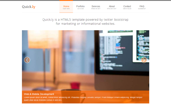 Quick.ly is a HTML5 template powered by twitter bootstrap for marketing or informational websites.